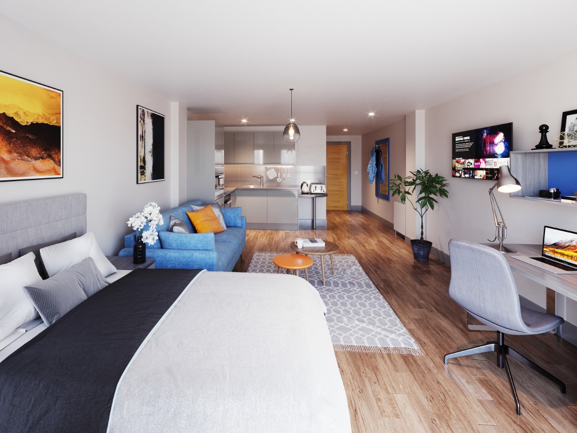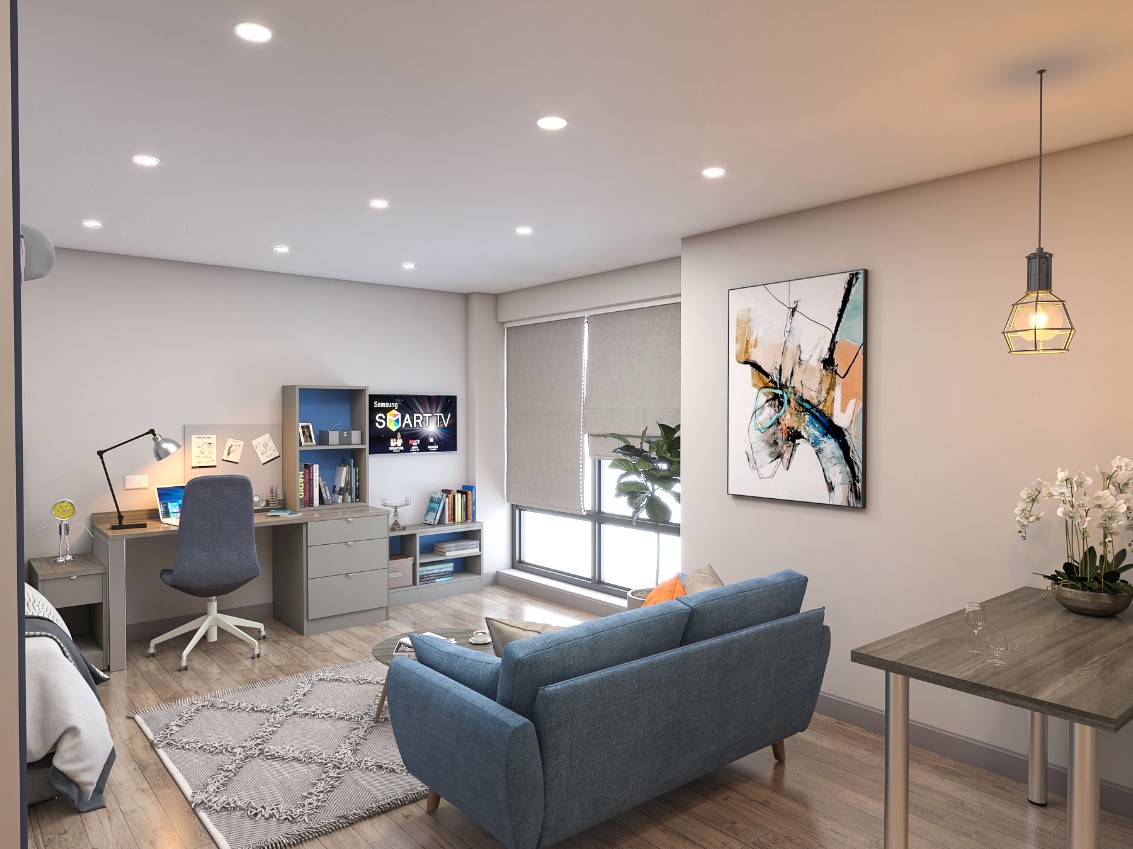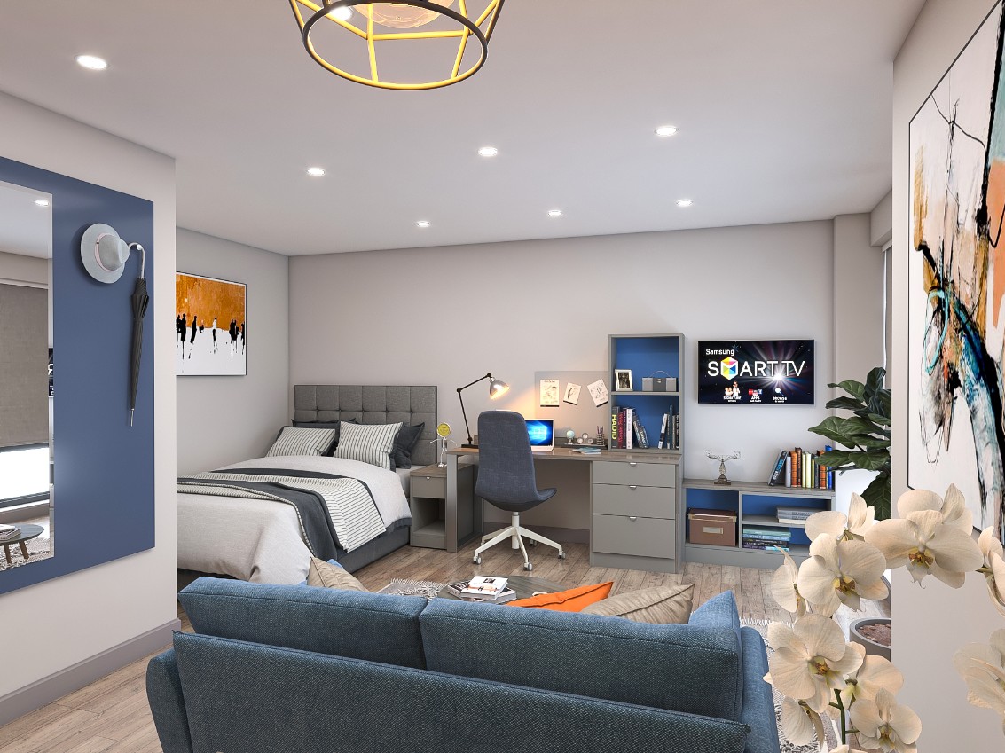 With an option of two beds in the Studios. Minimum area for the studios 28sq/m these spacious studios let you enjoy student life in style.